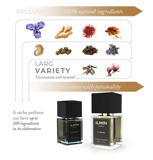 A diferencia de la perfumería comercial que trabaja con ingredientes sintéticos, fragancias comunes y producidas en masa; La perfumería de nicho es la forma de perfumería más exclusiva ya que permite potencializar la creatividad en la creación con la libertad de explorar una infinidad de ingredientes 100% naturales, raros e inusuales, otorgándole exclusividad de edición limitada.